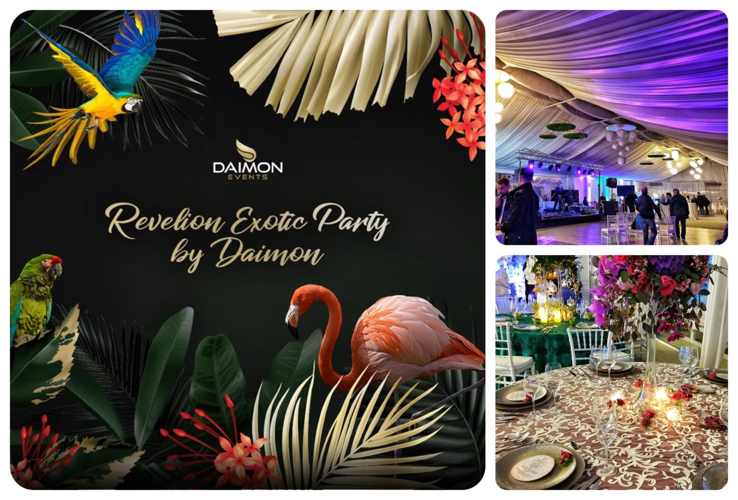 Daimon Club de la Tineretului este unul dintre spațiile cele mai ofertante din București fie că este vorba de luat masa în oraș, de spațiu pentru evenimente sau chiar activități fizice. Și tocmai pentru că dispune de un spațiu foarte generos pentru organizarea unor petreceri de amploare, de Revelion aici se organizează Exotic Party. Muzică latino, lumini spectaculoase, meniu culinar premium, open bar all night long și o atmosferă exuberantă – acestea ar fi ingredientele pentru o seară minunată. Muzica va fi asigurată de Strada Pogo band și DJ Bidi. Iar meniul conține un aperitiv apetisant cu 7 sortimente de bucate, două feluri principale absolut delicioase, un tort festiv, open bar diversificat, long drinks și vinuri atent selecționate.