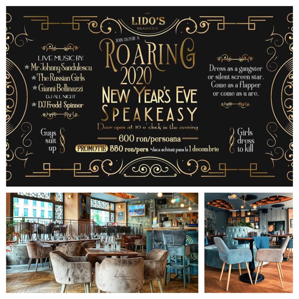 Amplasată în cadrul hotelului Lido by Phoenicia, pe Bulevardul Magheru, Lido’s Brasserie readuce la viață gloria vremurilor de altădată, păstrându-și aerul nostalgic al Micului Paris Interbelic. Drept pentru care și petrecerea lor de Revelion urmează același concept, adaptat timpurilor noastre moderne. Guys suit up. Girls dress to kill. As a dancer or silent screen star. Așa scrie pe afișul lor. Sună foarte distractiv, nu? Mai promit și muzică live și DJ all night, un meniu premium bar & buffet full open, entertaineri și multe altele. Grăbește-te dacă vrei să prinzi loc!