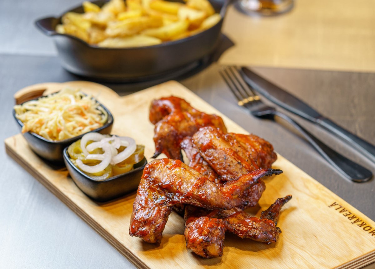 Meniul e de gastro-pub, iar coastele de porc sunt unul din preparatele lor. Dar nici aripioarele la cuptor nu se lasă mai prejos! Gătite la cuptor, cu sos de soia, ceapă și ardei, servite cu salată și dipping la alegere – de sweet chili, după o rețetă proprie, sau de smântână cu usturoi și mărar. Folosesc ingrediente bune și cât mai multe din piață, iar sosurile se fac la foc, nu la plic. Încearcă-le cu încredere!