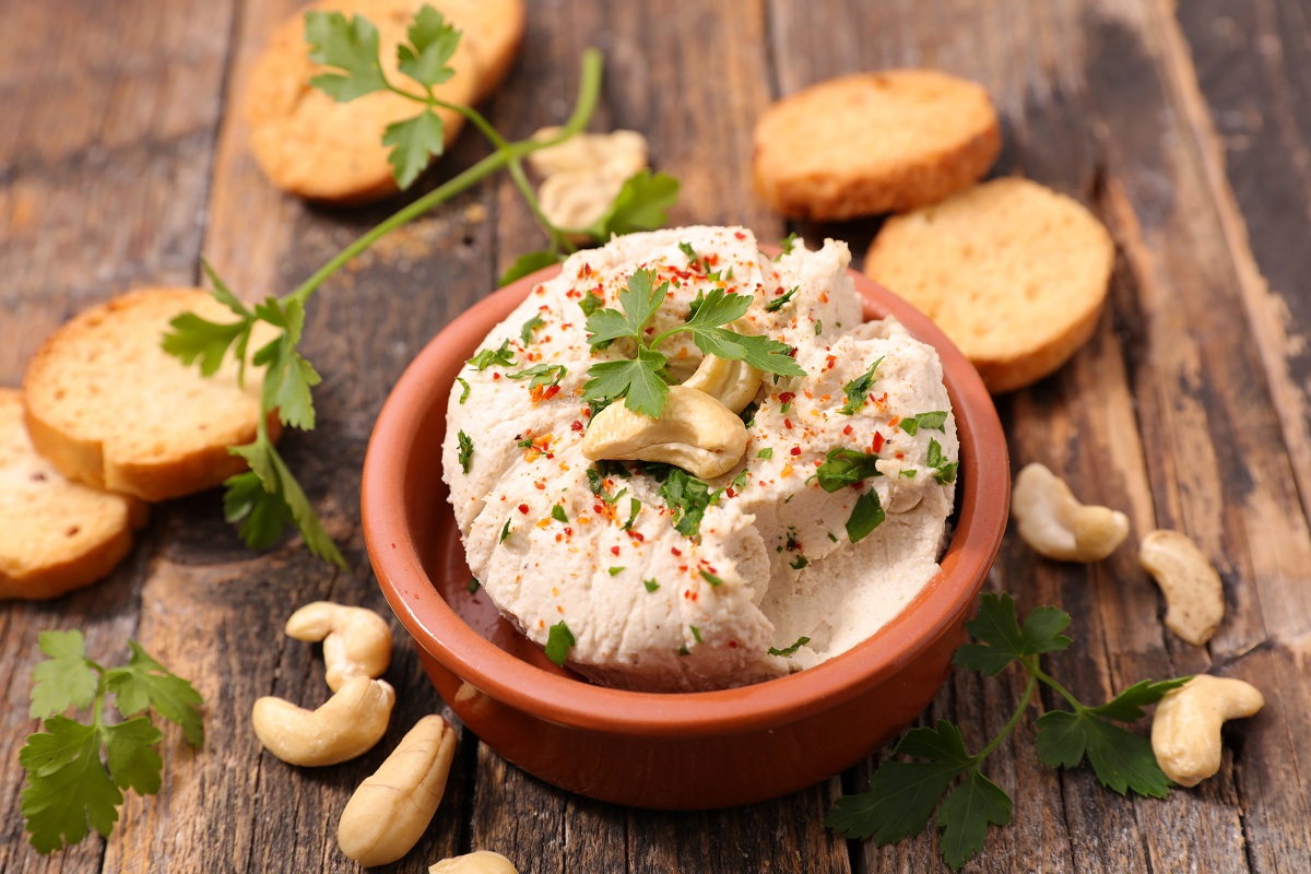 Pune caju-ul la înmuiat peste noapte. Scurge apa, pune-l în blender și adaugă ceapa tocată, 2-3 linguri de apă proaspătă, mărarul tocat și sare. Pasează toate ingredientele. La final, adaugă zeama de lămâie.