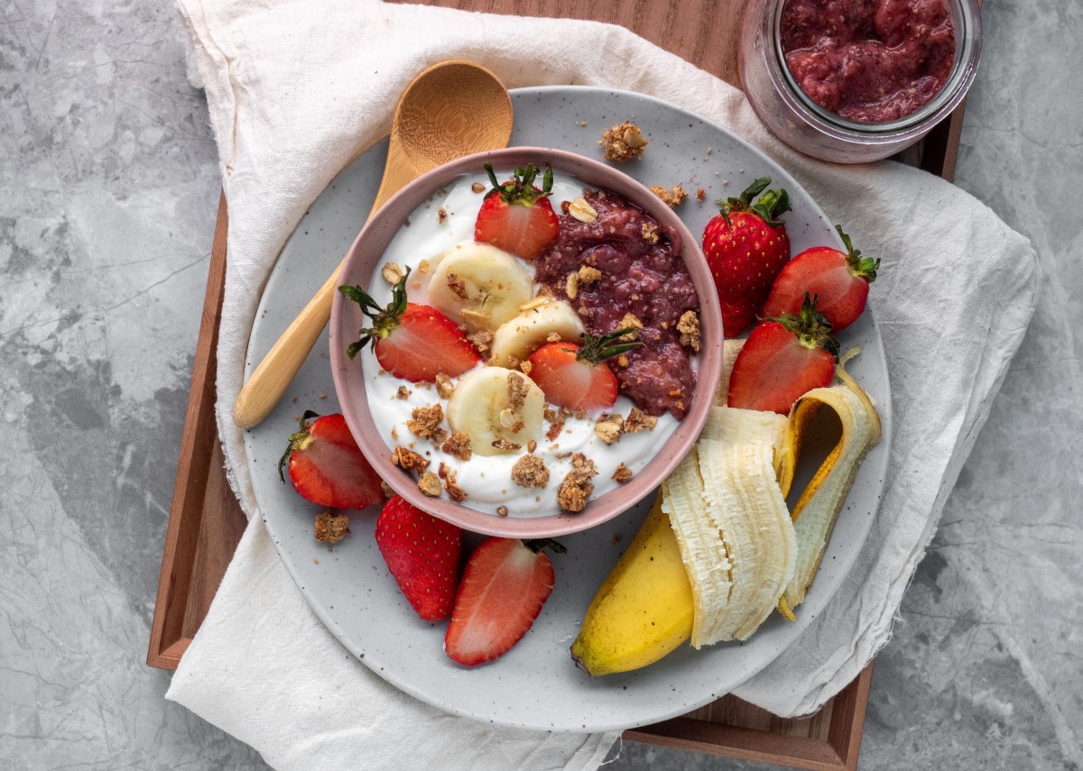 Dacă nu te împaci prea bine cu ingestia de alimente solide după ce ai fost la alergare, hrănește-ți organismul cu un smoothie din fructe proaspete pentru a-și asigura aportul necesar de carbohidrați, dar și o doză zdravănă de vitamine. Amestecă o banană (conține potasiu care reechilibrează nivelul electroliților) cu câteva alte fructe la alegere – optează pentru portocale sau căpșuni pentru un plus de vitamina C (ajută la refacerea organismului), plus iaurt sau pudră proteică – pentru aportul necesar de proteine.
