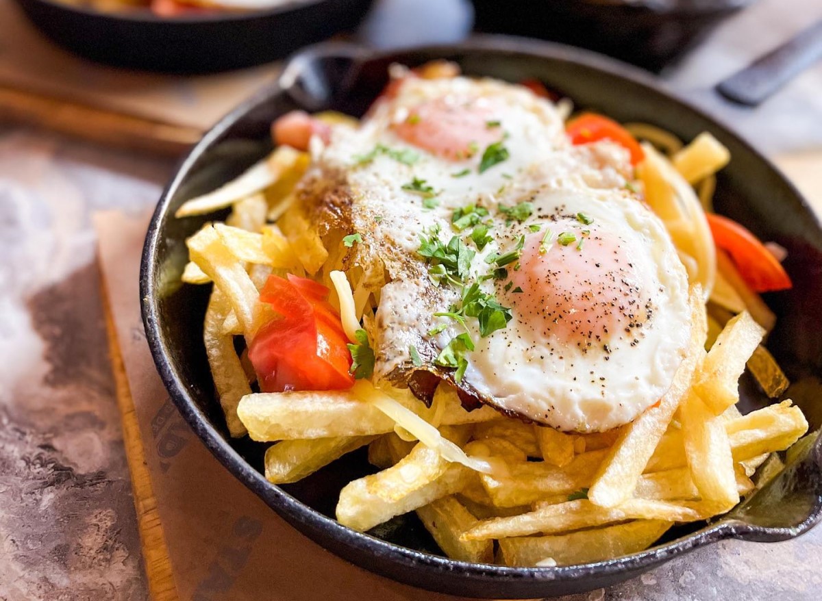 Gustul perfect de cartofi prăjiți intră în combinație cu ouă ochiuri, roșii, pacetta și puțin cașcaval ras, iar ceea ce rezultă este Dezmățul de la Stadio. Intrat la categoria „Tratament de mic dejun” e, cu siguranță, ceea ce s-ar numi o masă sățioasă, care să te trezescă și să te pună pe picioare pentru ziua care tocmai începe. Așa că dacă te numeri printre cei care ar putea mânca cartofi prăjiți dimineața, la prânz și seara, acest preparat va fi pe gustul tău!