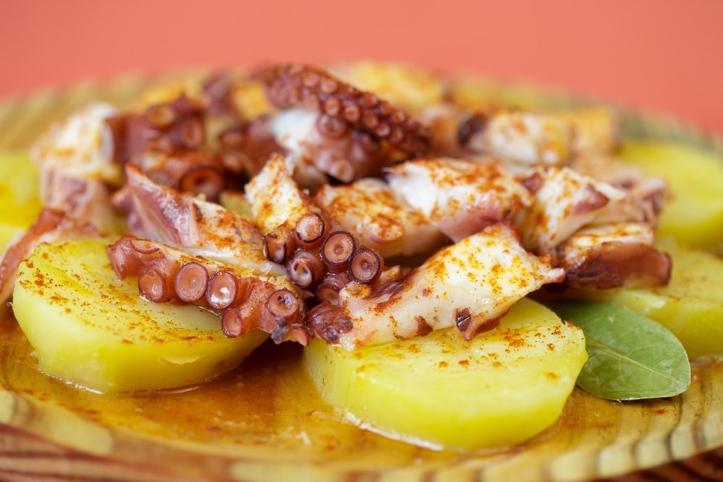 Regiunea Galiciei este cunoscută în toată Spania pentru gastronomia sa clasică. Se întinde de-a lungul Coastei Atlantice așa că, deloc surprinzător, fructele de mare sunt caracteristica definitorie a bucătăriei galiciene. Pulpo a la gallega este un preparat foarte simplu, cu doar patru ingrediente: calamar, ulei de măsline, boia și sare. Tocmai de aceea, secretul constă în metoda de preparare, cât de bine este gătit, și în prospețimea ingredientelor. Calamarul se fierbe într-o oală mare de cupru și e foarte important cât este lăsat la gătit, așa încât să nu fie nici prea cauciucat, nici prea fiert. Când e gata, se taie cu foarfeca în bucățele, se condimentează cu sare și boia și se stropește cu ulei de măsline.
