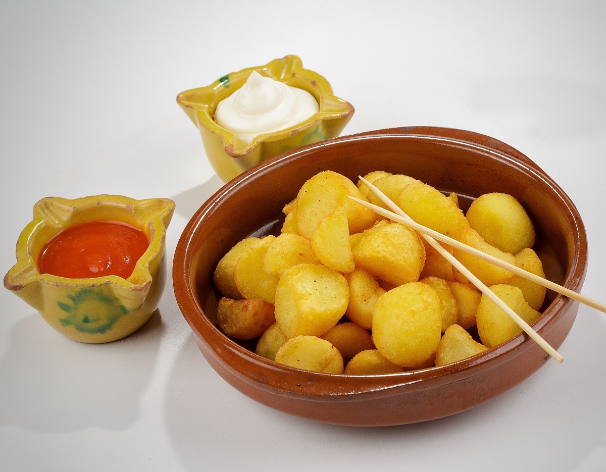 Atunci când niște cartofi crocanți se întâlnesc cu sosul de paprika picant și aioli, ia naștere Patatas Bravas. Sunt serviți ca gustare, tapas, în baruri și restaurante. Cartofii sunt prăjiți, dar moi la interior, se pun grămadă în farfurie, apoi sunt asezonați cu acest sos de tomate, ardei, usturoi, chilli și zahăr. Sau cu sos alb aioli. Sosurile diferă destul de mult, de la o regiune la alta. În Madrid, spre exemplu, se folosește un sos cu pimentón (paprika spaniolă, dulce-picantă) și nu se adaugă roșii. Oricum ar fi, sunt delicioși!