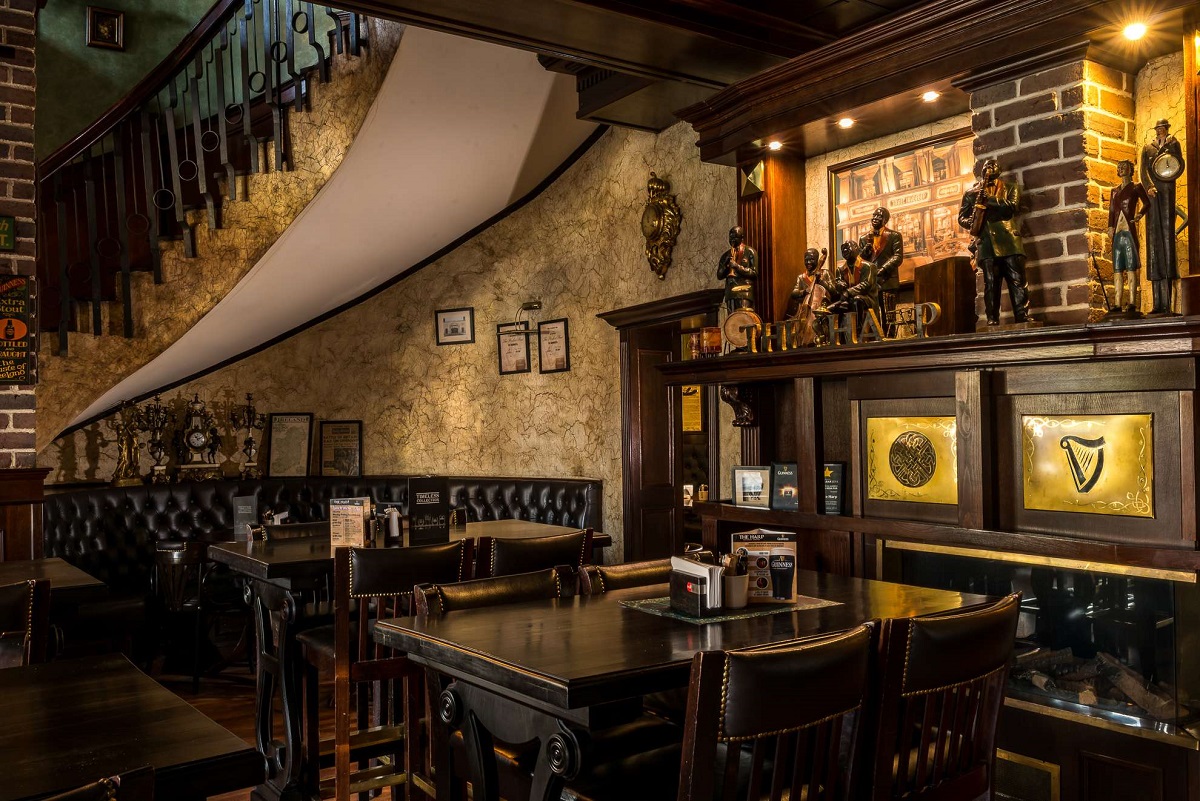 The Harp nu mai are nevoie de nicio introducere. Este unul din cele mai vechi pub-uri irlandeze de la noi (deschis în 1997) și e imposibil să nu fi trecut pe la Unirii și să dai cu ochii de el. Locul arată foarte bine – întotdeauna a avut acel aer britanic, cu mobilierul din lemn masiv, culorile închise și canapelele din piele. Iar atmosfera e foarte relaxată. Aici se merită să vii și să mănânci, nu doar să bei. Plăcintele irlandeze, Sheppard’s Pie, Cottage Pie, faimosul fish & chips, burgeri gourmet (o mulțime!), cheesecake-ul sau plăcinta cu mere… toate sunt bune. Iar la capitolul băuturi, chiar ai de unde alege! De la bere (draught sau la sticlă, Guinness, Kilkenny, Grimbergen, London Pride și multe, multe alte sortimente), la whisky de calitate.