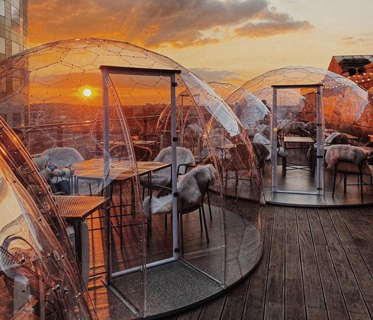 Poate că nu e chiar primul lucru care îți vine în minte atunci când te gândești la „terase acoperite”, dar cu siguranță soluția găsită de cei de la Linea Closer To The Moon este una care ne place tare de tot! Arată ca niște igluuri în care te poți adăposti chiar și când afară temperatura scade sau vremea e mohorâtă și partea cea mai bună e că te poți bucura în continuare de priveliștea aia frumoasă pe care o ai pe terasa lor. Așadar, dragi astronauți, dați o fugă pe la stația spațială Closer to the Moon, căci navele spațiale sunt pregătite pentru vizitatori. Îți poți rezerva călătoria în intervale 18:00 – 21:00 și 21:00 – 00:00.