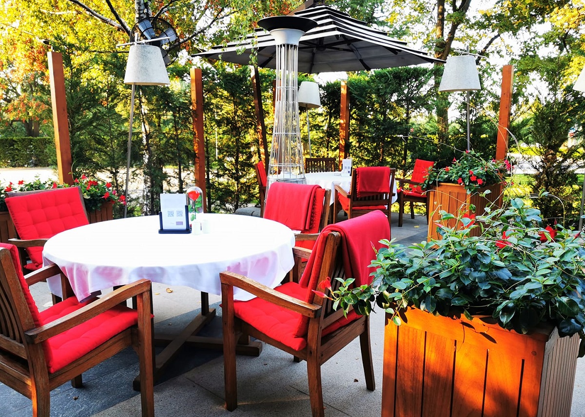 Dine, Wine and Pine! La Pine Restaurant & Terrace de la Crowne Plaza Bucharest găsești o terasă pregătită cu tot ce trebuie pentru toamnă! Mesele sunt acoperite, au încălzitoare instalate, ba chiar și pături care să îți țină de cald și să te facă să te simți cât mai confortabil! Ne place aici pentru că e multă verdeață în jur (dacă e să ne referim la aspect), iar mâncarea este grozavă! Chef Ernesto Dosman vine cu tot felul de preparate gustoase, inspirate din bucătăria mediteraneeană și internațională. Folosesc ingrediente organice și locale, ba chiar au sera lor de unde culeg condimente proaspete precum oregano, busuioc sau rozmarin.