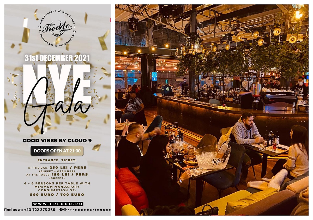 Dacă până acum ți-am recomandat tot felul de restaurante elegante, hai să venim și cu o recomandare de local în care vei regăsi atmosfera cluburilor care promit distracție până în zori. Freddo Bar & Lounge, de pe strada Smârdan, este un loc foarte cool și foarte frumos amenajat, cu un design modern – spre exemplu, acoperișul este complet retractabil și pereții din sticlă sunt glisanți. Fiind una dintre cele mai exclusiviste localuri din Centrul Vechi, nu e de mirare că petrecerea de Revelion va fi una de tip gală. Mai exat NYE Gala.